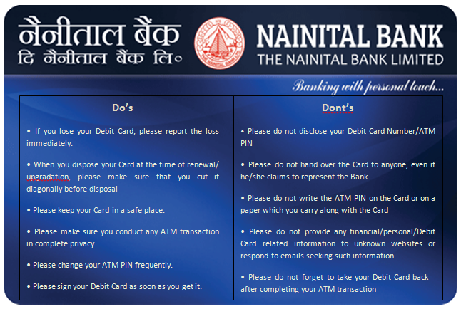 Customers should observe following Do’s and Don’ts to keep their transaction safe and secure at ATM: