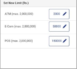 Cardholder can withdraw up to a maximum of Rs.20,000/- in a day and up to maximum of Rs.10,000/- can be withdrawn in a single transaction within the overall limit of the card.