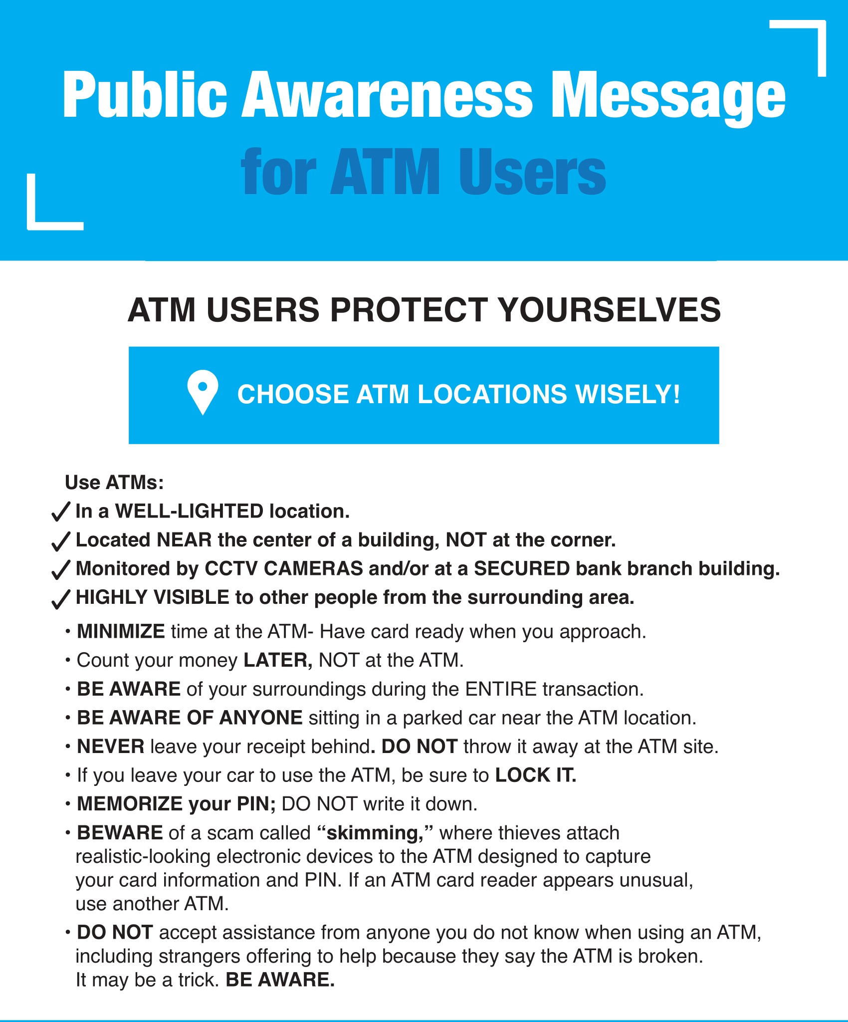 Public Awareness Message for ATM Users
